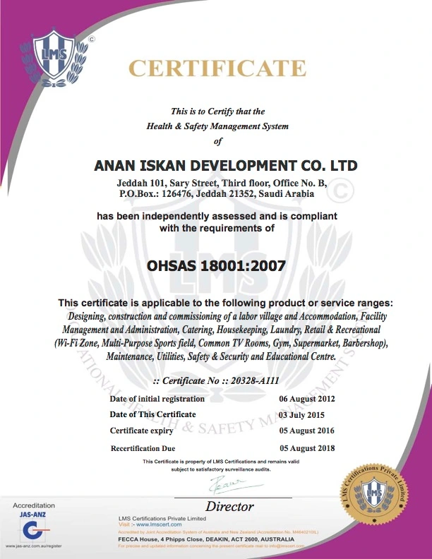 تقدم شركة عنان إسكان حلولاً بديلة لمساكن العاملين بمواصفات عالية وعالمية في المملكة العربية السعودية ودول الخليج، حيث تنشئ بيئة معيشية متكاملة تشعر فيها بالراحة والأمان، نظراً لتوفر الخدمات الأمنية والرعاية الصحية ووسائل الراحة المختلفة.